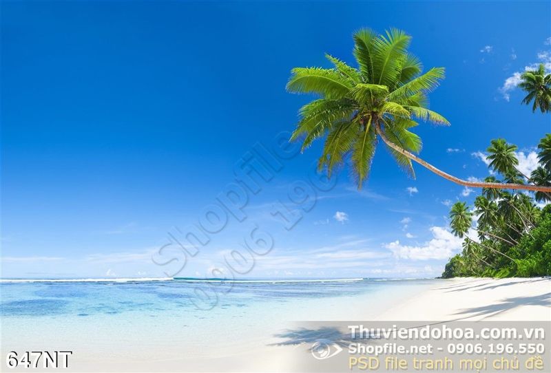 Tranh biển và dừa trên hòn đảo