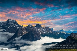 Tranh núi và bầu trời hoàng hôn