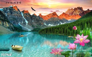 Tranh dãy núi tuyết bên dòng sông