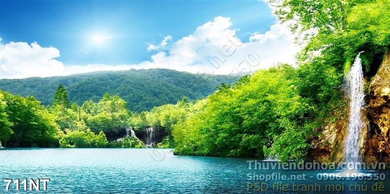 Tranh thác nước trên dòng sông trong rừng