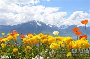 Tranh núi Phú Sĩ và hoa tulip vàng
