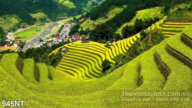 Tranh đồi núi và ruộng bậc thang