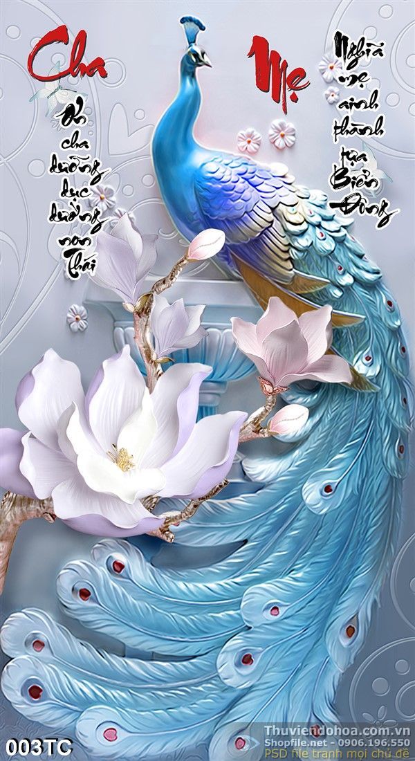 Tranh chim công phù điều nghệ thuật 3d