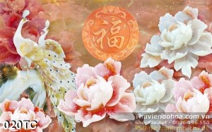 Tranh chim công hoa mẫu đơn giả ngọc in uv chất lượng