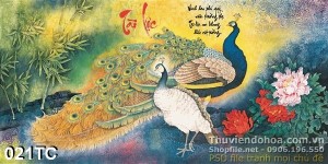 Tranh chim công sơn dầu đẹp ấn tượng in uv psd