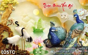 Tranh chim công thuần buồm xuôi gió 3d giả ngọc đepj