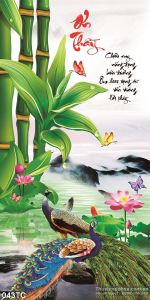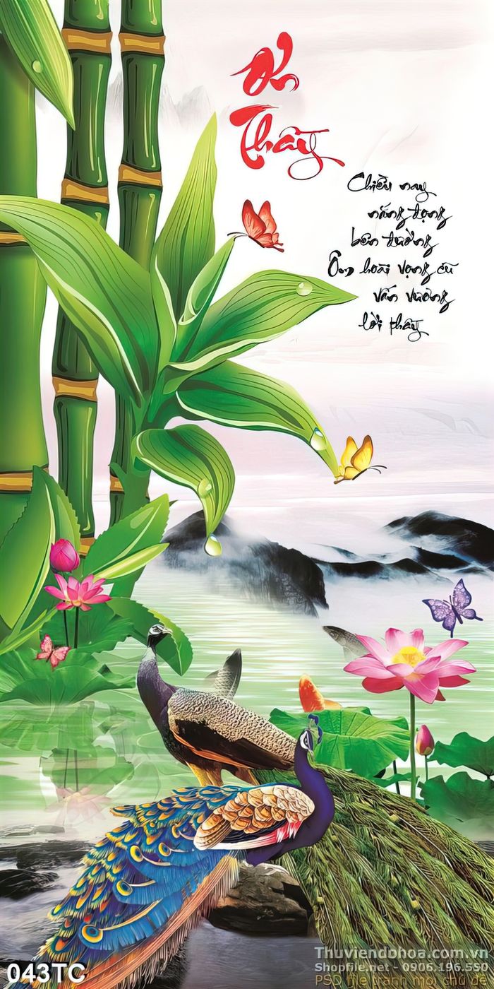 Tranh chim công nhớ ơn thầy và cây sống đời đẹp