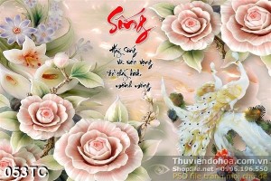 Tranh chim công hoa giả ngọc chữ sống thư pháp psd