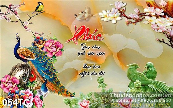 Tranh chim công giả ngọc và con chim xanh wall