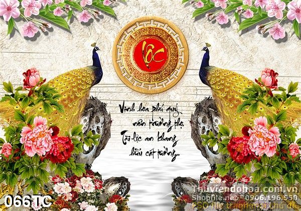 Tranh chim công và chữ lộc năm mới đẹp ấn tượng