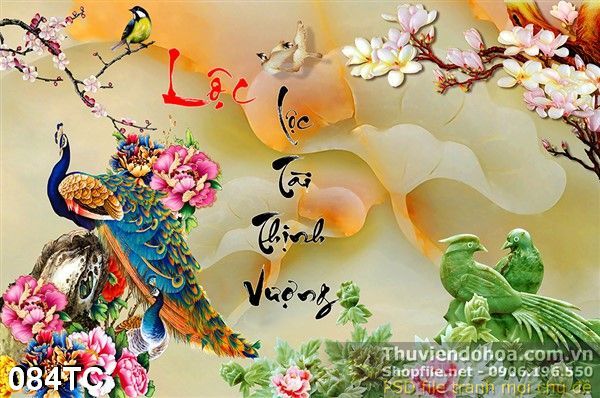 Tranh chim công chữ lộc giả ngọc 3d