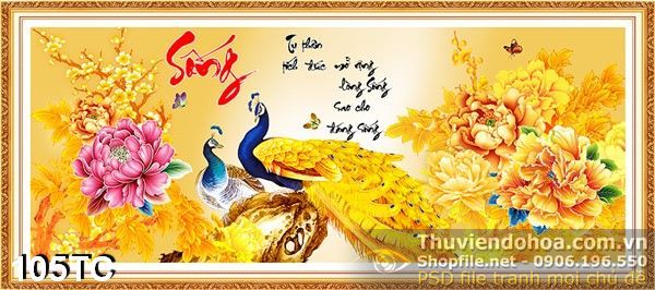Tranh chim công chữ sống khổ ngang 3d in uv