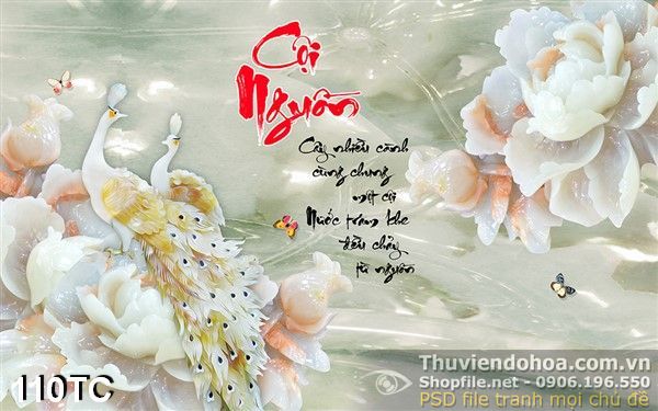 Tranh chim công cội nguồn giả ngọc 3d