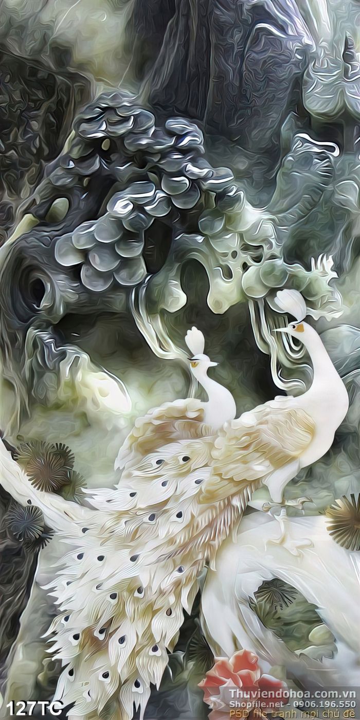 Tranh chim công giả ngọc 3d và cái cây lớn psd