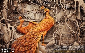 Tranh chim công bằng gỗ 3d in psd đẹp