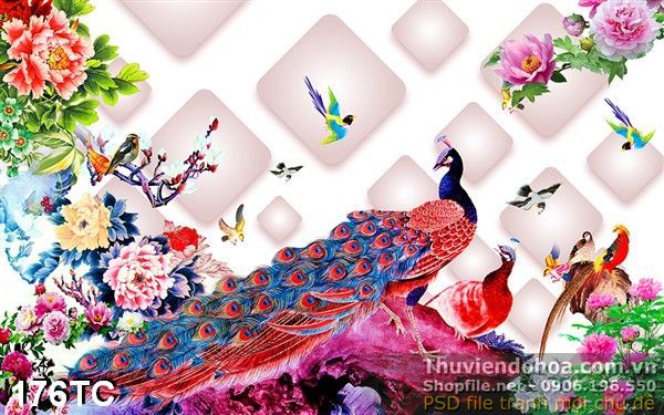 Tranh chim công nghệ thuật 3d in uv file psd