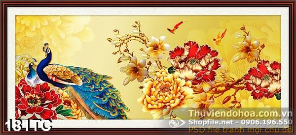 Tranh chim công và hoa mẫu đơn mạ vàng đẹp mắt