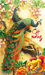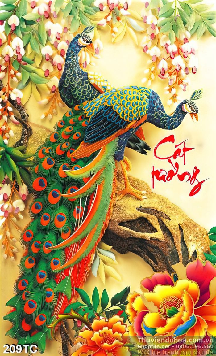 Tranh chim công cát tường vui đùa bên nhau psd 3d