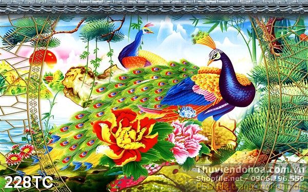 Tranh chim công khoe sắc lộng lẫy psd 3d đẹp