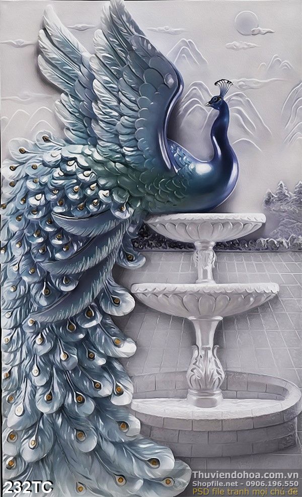 Tranh chim công 3d giả ngọc tung cánh 3d