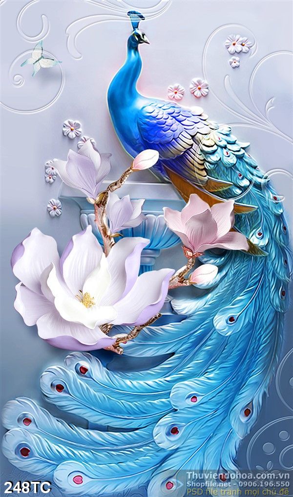 Tranh chim công điều khắc đẹp 3d