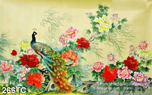 Tranh chim công sơn dầu psd