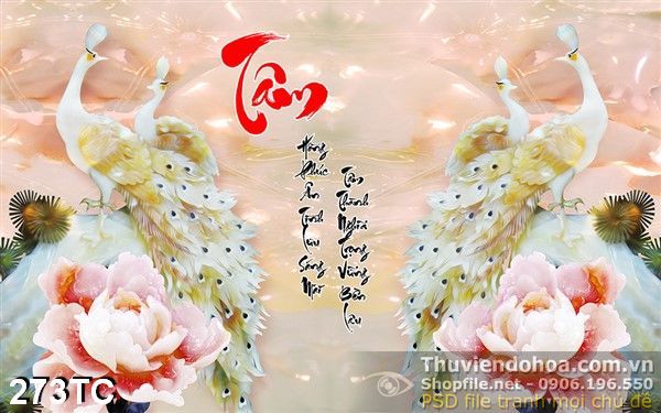 Tranh chim công tâm màu trắng giả ngọc 3d