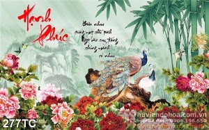 Tranh chim công hạnh phúc và cây tre già