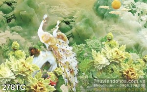 Tranh chim công màu trắng giả ngọc wall 3d psd