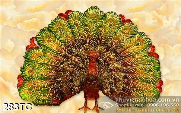 Tranh chim công giả ngọc 3d xòe đuôi khoe sắc