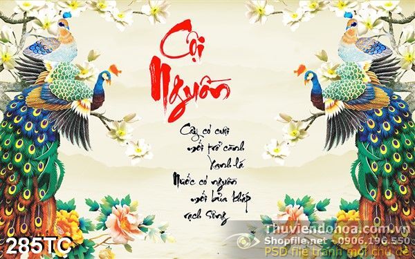 Tranh chim công cội nguồn trang trí psd
