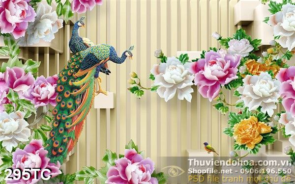 Tranh chim công 3d và hoa mẫu đơn 3d giả ngọc