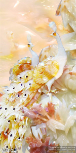 Tranh chim công khổ dọc 3d giả ngọc ấn tượng