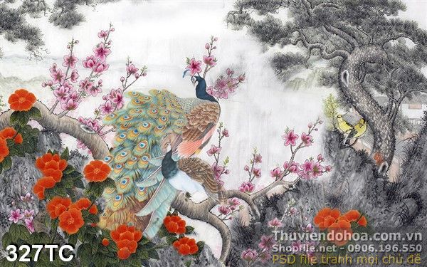 Tranh chim công sơn dầu đẹp ấn tượng in uv psd