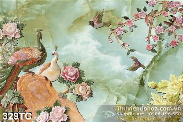 Tranh chim công cội nguồn sơn thủy và hoa mẫu đơn