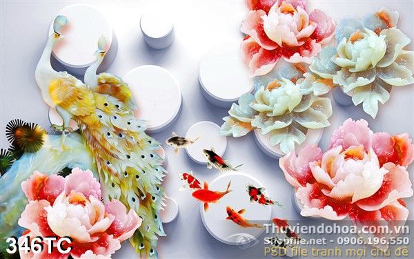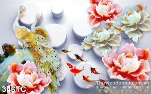 Tranh chim công 3d và hoa mẫu đơn in uv giả ngọc