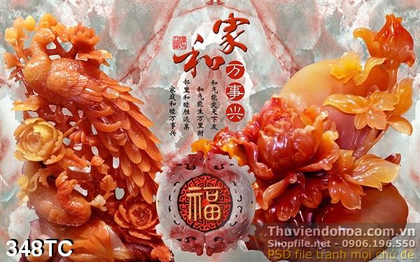 Tranh chim công giả ngọc màu đỏ đẹp psd