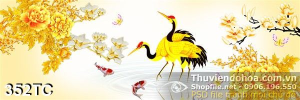 Tranh chim hạc và hoa mẫu đơn mạ vàng psd