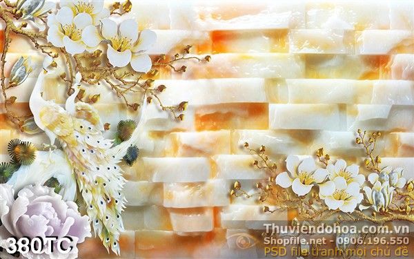 Tranh chim công giả ngọc psd 3d wall