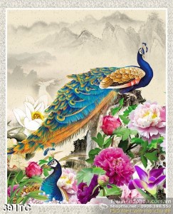 Tranh chim công treo trường psd đẹp