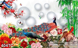 Tranh chim công và dàn hoa mẫu đơn đẹp