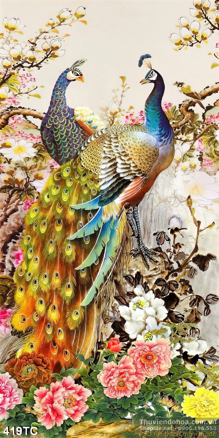 Tranh chim công nghệ thuật in uv