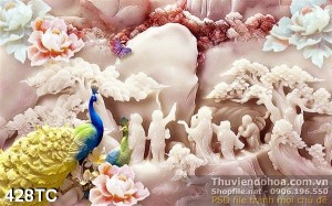 Tranh chim công 3d điêu khắc giả ngọc in uv