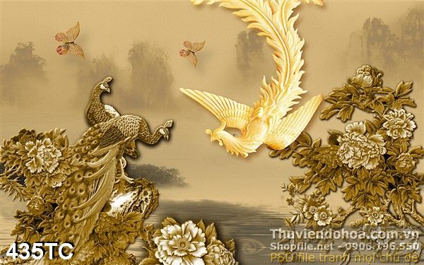 Tranh chim công bay lượn phù điều in uv khổ psd