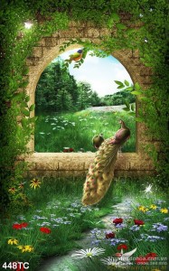 Tranh chim công in uv đứng bên hiên cửa sổ