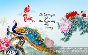 Tranh chim công ơn thầy và hoa mẫu đơn đẹp ấn tượng