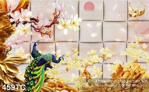 Tranh chim công cây cổ thụ ngàn năm psd in uv