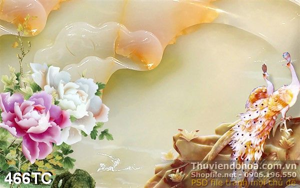 Tranh chim công hoa mẫu đơn giả ngọc 3d