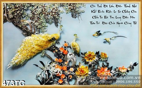 Tranh chim công 3d màu vàng giả ngọc đẹp psd
