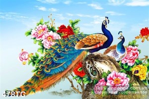 Tranh chim công và bầu trời trong xanh